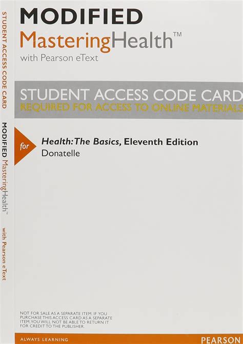 Read Online Modified MasteringHealth with Pearson eText ValuePack Access Card for Health The Basics Epub By Click Button. Modified MasteringHealth with Pearson eText ValuePack Access Card for Health The Basics it’s easy to recommend a new book category such as Novel, journal, comic, magazin, ect. You see it and you just know that the designer is also an author and understands the challenges involved with having a good book. You can easy klick for detailing book and you can read it online, even you can download it